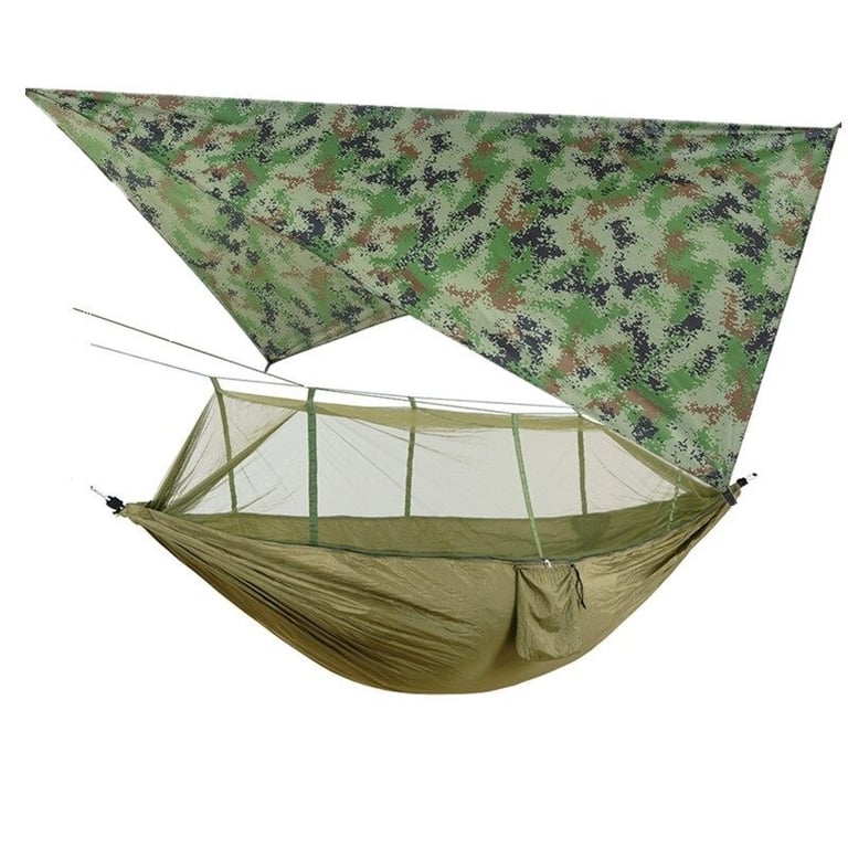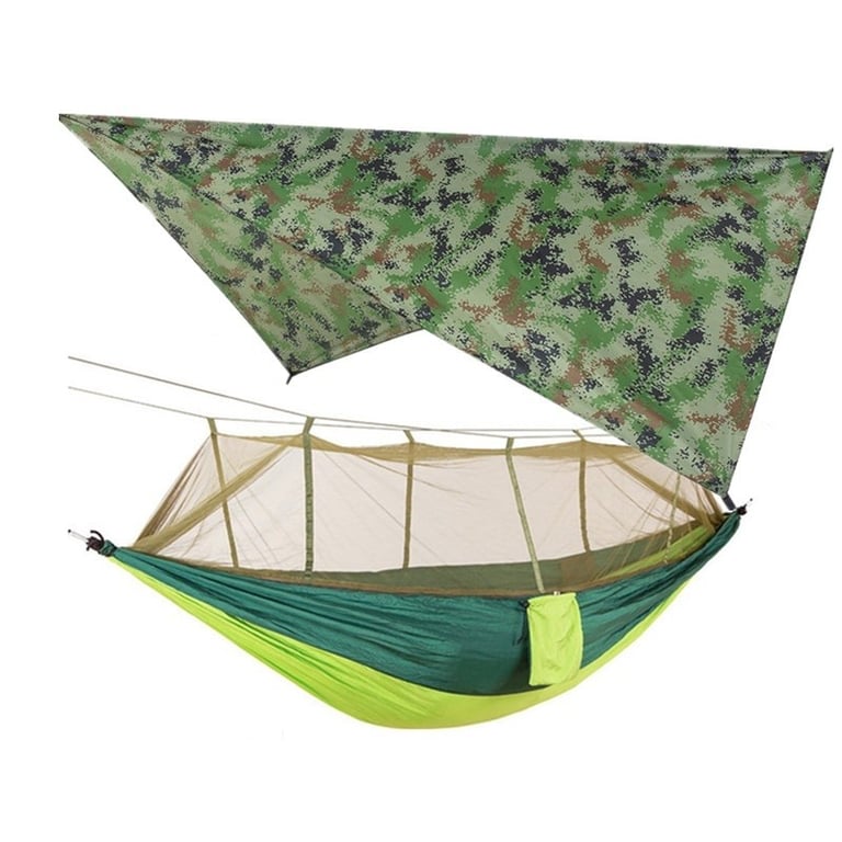 This hammock is perfect for anyone who enjoys sleeping outdoors. The hammock with a rain cover is easy to set up and made from high-quality, durable nylon material. It has a weight capacity of up to 300 kg. Included is a mosquito net and a cover for rain or sun. So you can be sure that you will always have a great time resting.