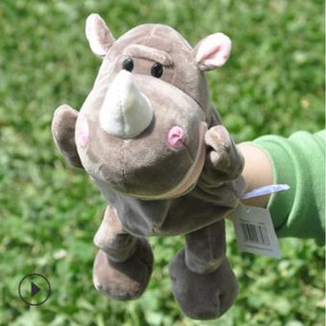 Plush hand puppet rhinoceros.