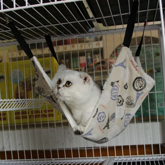 Cats love high places, so they will quickly take a liking to this hanging bed. You can attach it between furniture. The pleasant material ensures comfort for the cats. You can choose from two sizes.