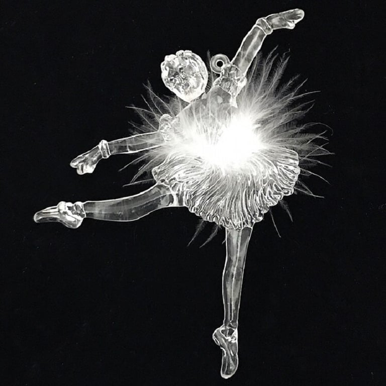 Beautiful decorative ballerina made of clear material with a feather skirt.