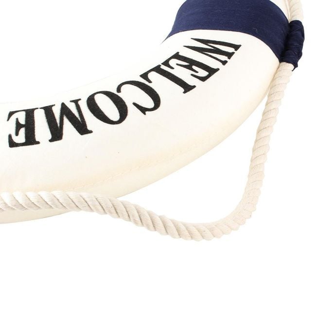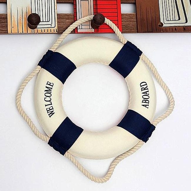 Original decoration in the form of a lifebuoy. With the welcoming inscription "Welcome Aboard", it is suitable for example for the front door of an apartment or in a hallway. The circle has a diameter of 20 cm and is made of lightweight foam material.