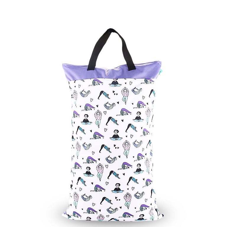 A hanging diaper bag with a double inner pocket for separating clean and used nappies.