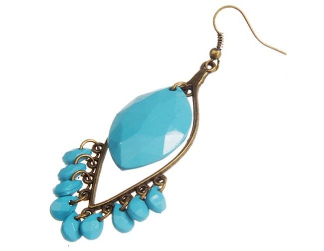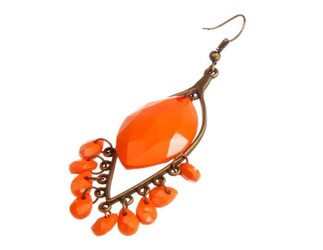 The dangling earrings are available in blue or orange. They are perfect for a simpler outfit, instantly brightening it up.