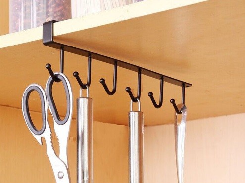 A practical hanging rail with five hooks for placing any cookware and kitchen utensils.