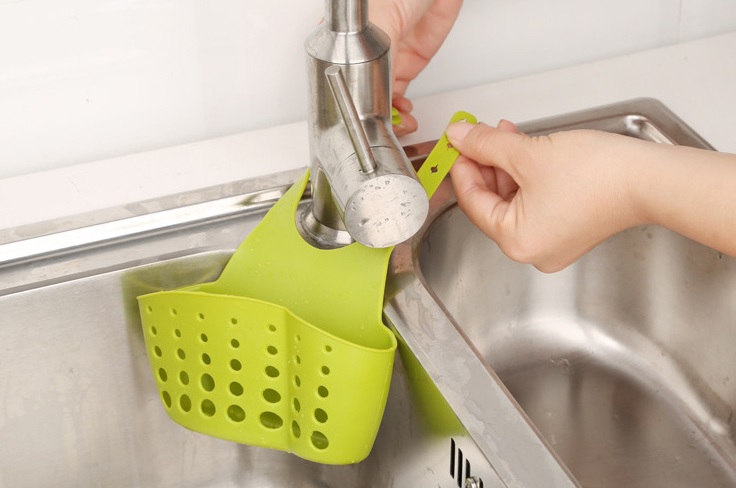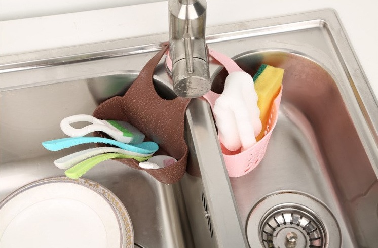 A very practical hanging holder for dish sponges, scouring pads, and brushes will be your helper in the kitchen.