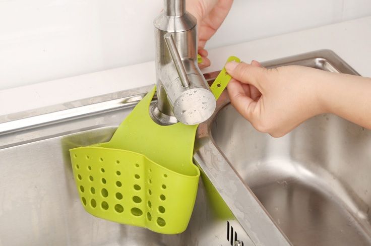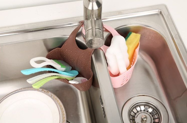 A very practical hanging holder for dish sponges, wire brushes, and brushes will be your helper in the kitchen.