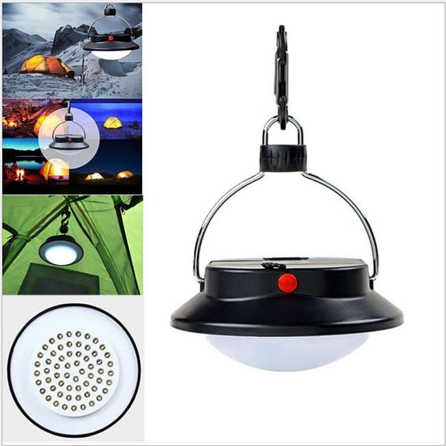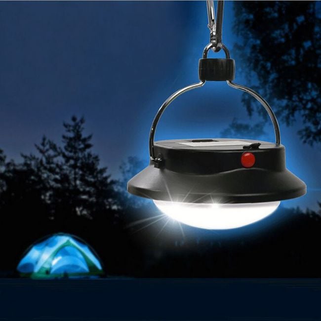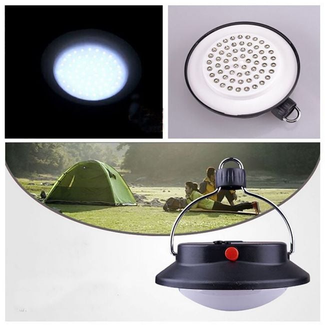 Practical hanging LED lamp that you can use, for example, in a tent while camping.