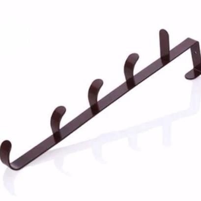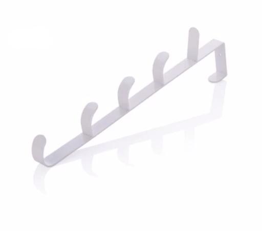 Mug holder with six hooks that can be easily hung on a kitchen shelf.