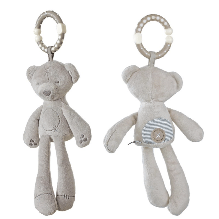 Plush toy with a teether. Can be hung above a crib or on a stroller.