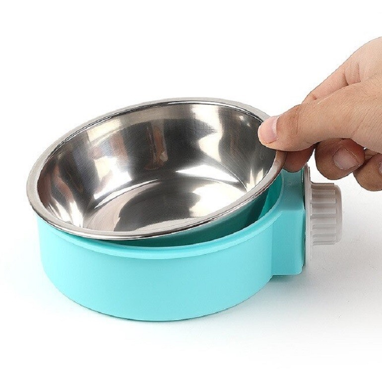 Hanging stainless steel bowl for cage