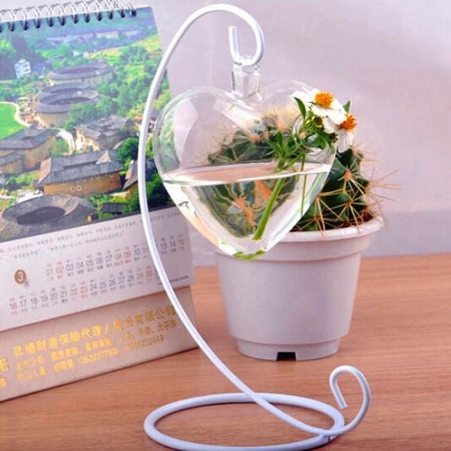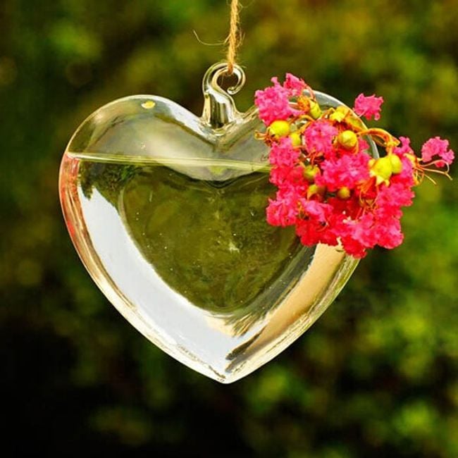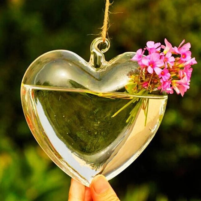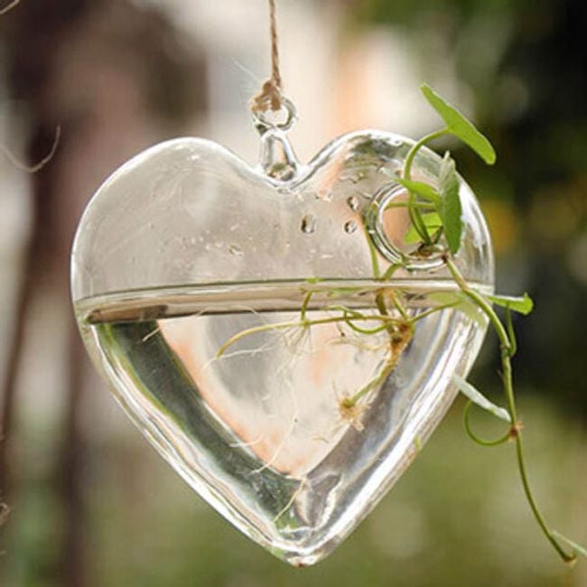 A vase with a modern, stylish, and simple design. You can hang this glass vase in your home, office, or garden. It can withstand temperatures down to -20 °C. You can decorate the vase by adding pebbles or seaweed, for example. The vase can hold not only cut flowers but also small aquatic plants. This product makes a great gift of love.