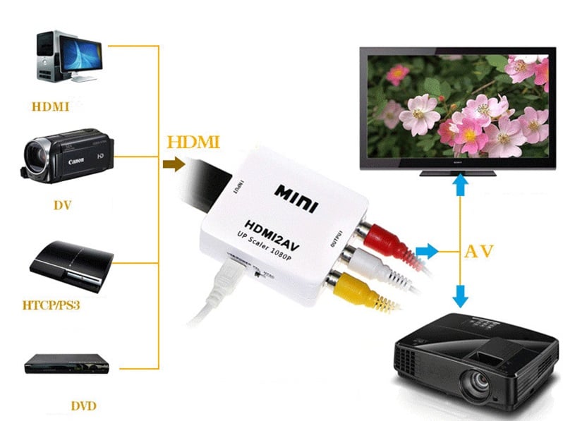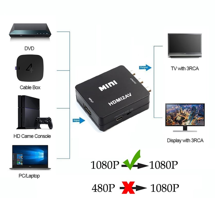 It helps users change high-quality HDMI video signals to standard CVBS signals (standard resolution 480i, 576i), allowing playback on televisions, VHS video recorders, DVD recorders, etc.