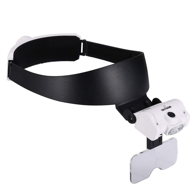 This magnifier with an ergonomic frame and soft padding is suitable for all head sizes. The width can be easily adjusted with a knob to fit the size of the head. With a maximum magnification of up to 3.5x, it is ideal for dentists, electricians, or jewellers.