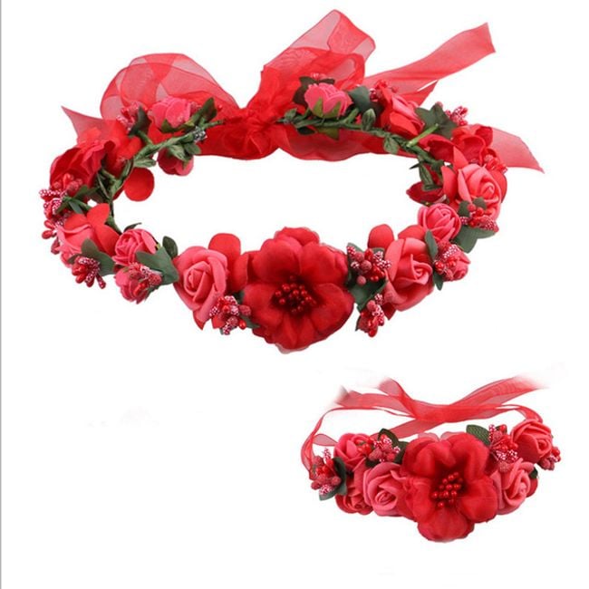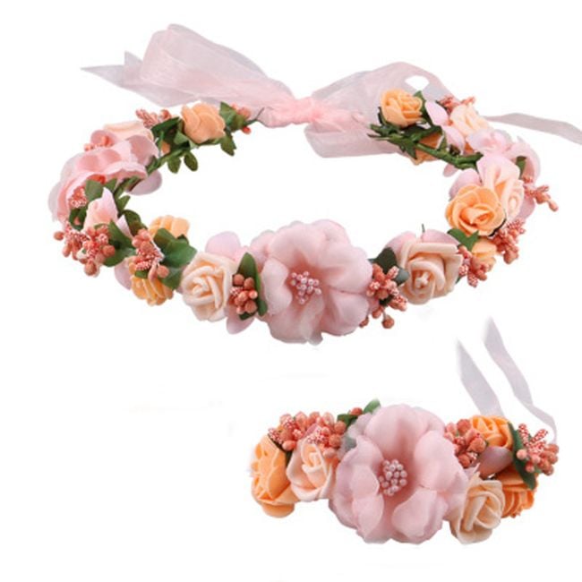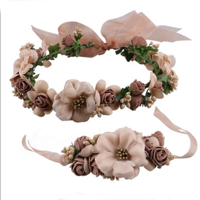 Beautiful floral headband and bracelet, perfect as accessories for a bridesmaid.