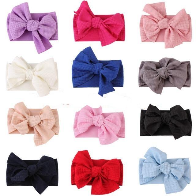 Nylon headband with a large bow. Available in multiple colours.