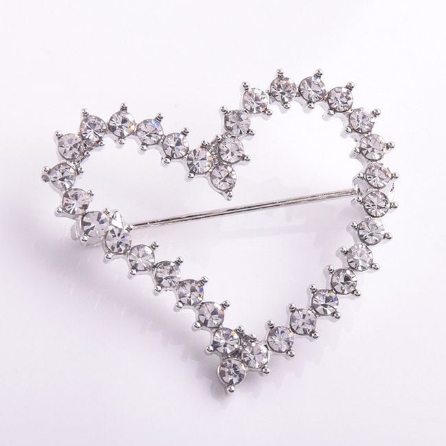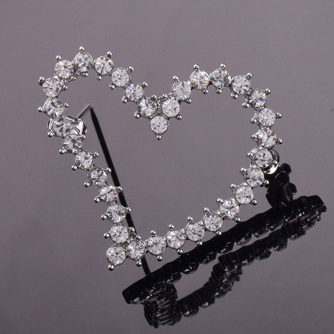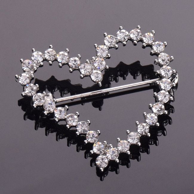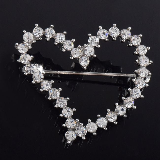 Elegant women's heart-shaped brooch with costume jewellery stones.