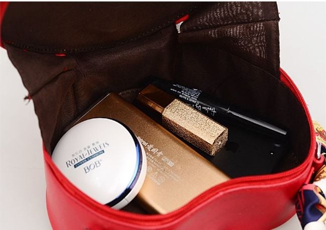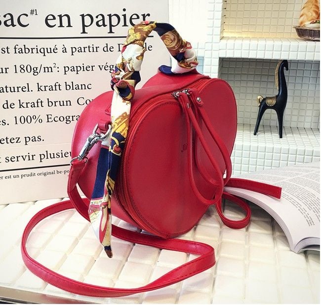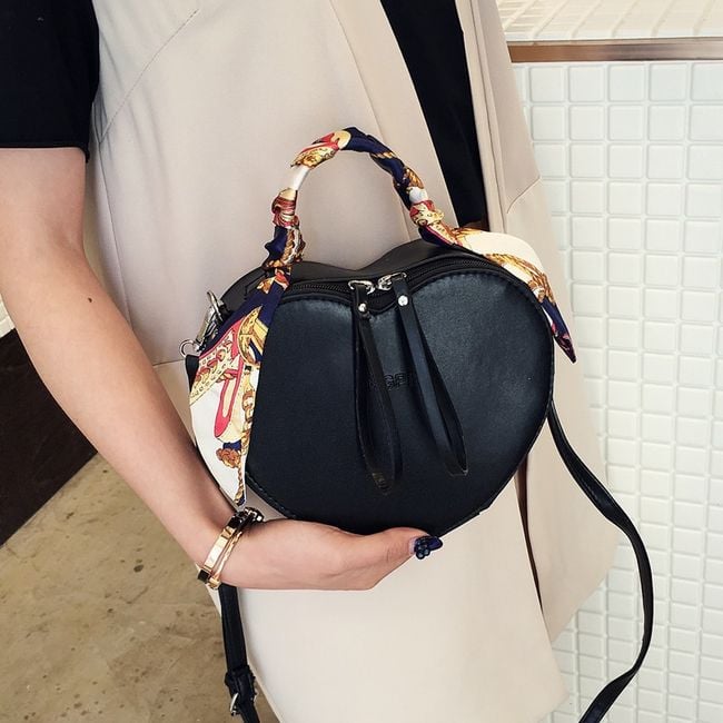 The handbag has a handle adorned with a colourful scarf and also comes with a crossbody strap.