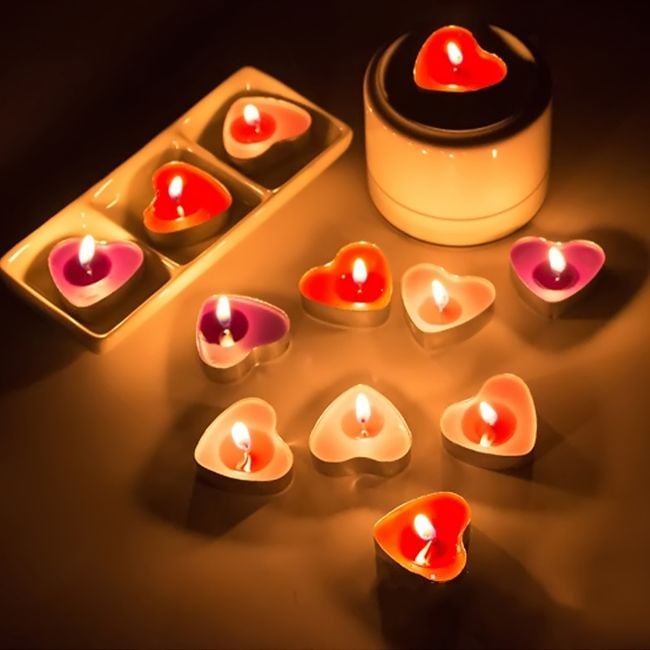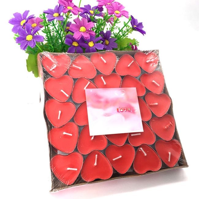 Creating a pleasant romantic atmosphere at home can be aided by heart-shaped candles. You can choose from two colours – pink and red.