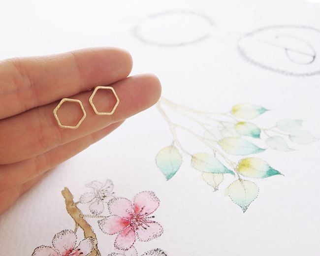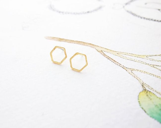 The earrings look like hexagons, come in silver or gold, and are suitable as a very stylish accessory for everyday wear.