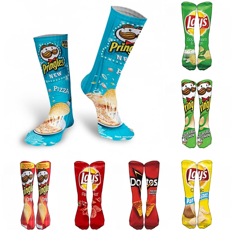 High 3D socks with several designs of famous potato crisps