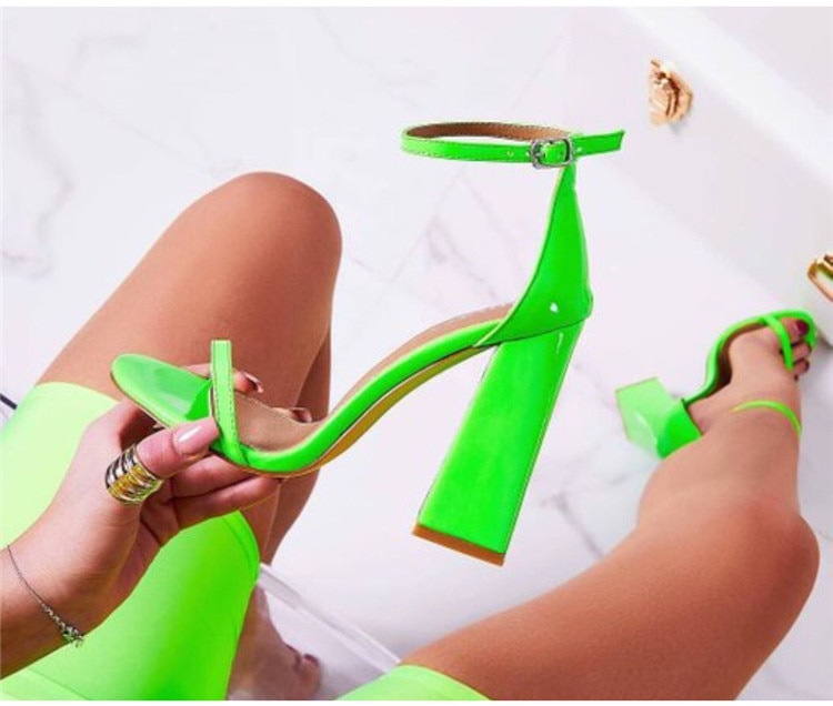 High neon stylish shoes with a wide heel and strap
