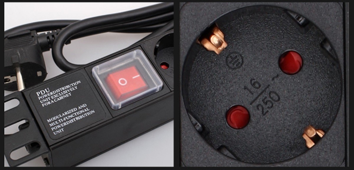 The black extension lead with a switch and 8 sockets is designed for transferring power to areas where a fixed socket cannot reach.