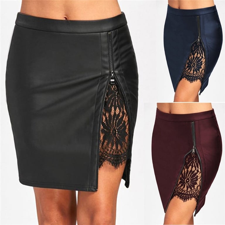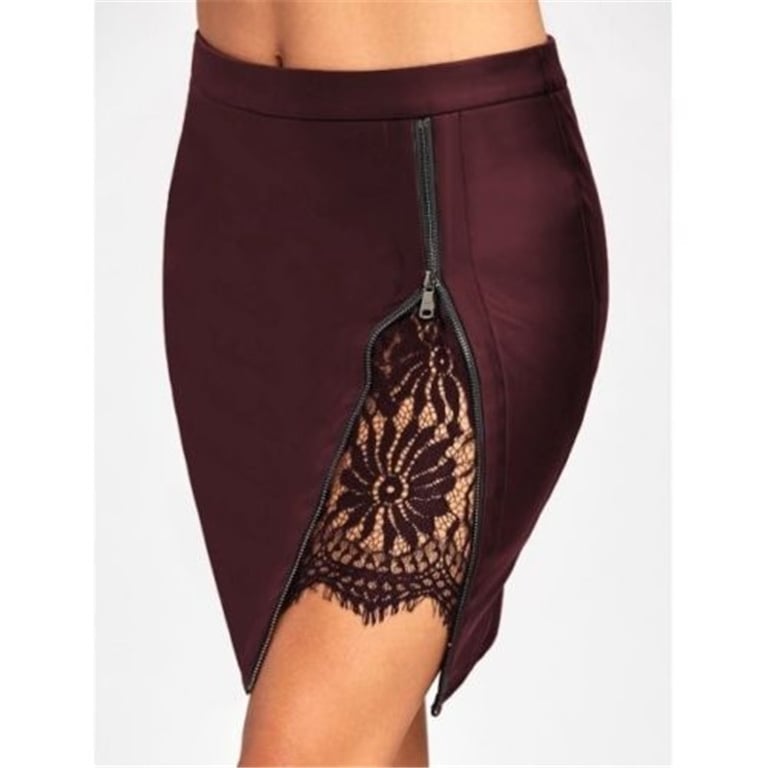 Sexy high-waisted zip skirt with lace Lea