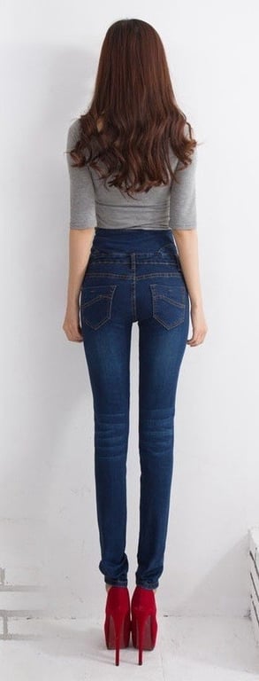 These women's high-waisted jeans perfectly accentuate feminine lines.