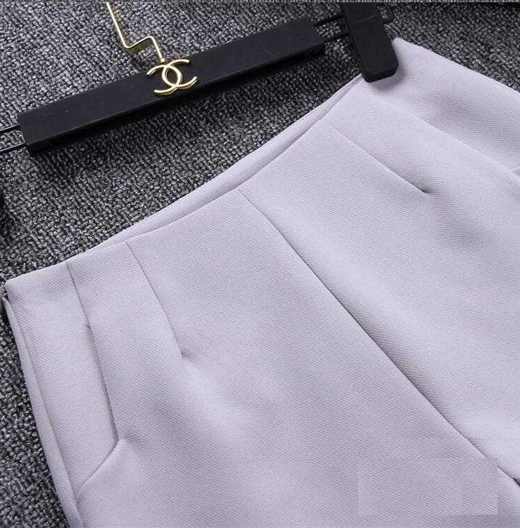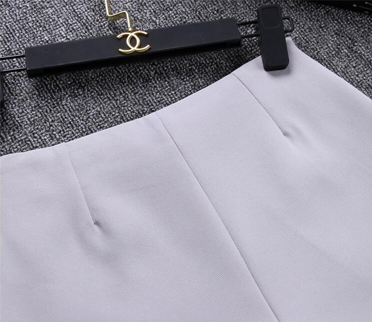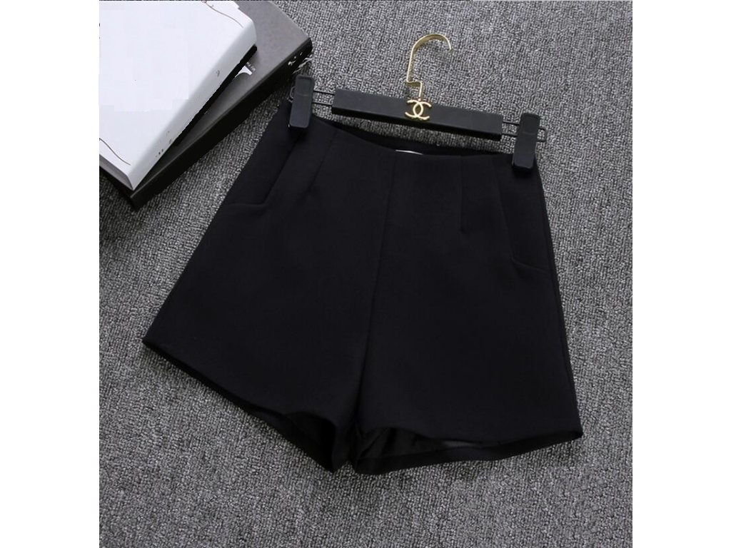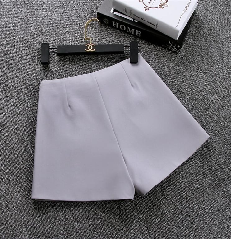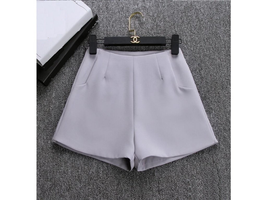 Dress stylishly with these high-waisted shorts. The shorts feature pockets on the front, so you'll have a place to put smaller items. Now at a great price! **Material:** polyester **Colour:** grey, black, white **Size Chart** | Size | Waist (cm) | Hips (cm) | Length (cm) | |------|------------|------------|--------------| | XS | 64 | 90 | 30 | | S | 68 | 94 | 31 | | M | 72 | 98 | 32 | | L | 76 | 102 | 33 |