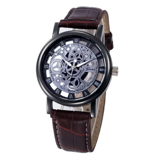 The watch features a hollow dial, allowing a view into its interior, making it suitable as an accessory for everyday wear.