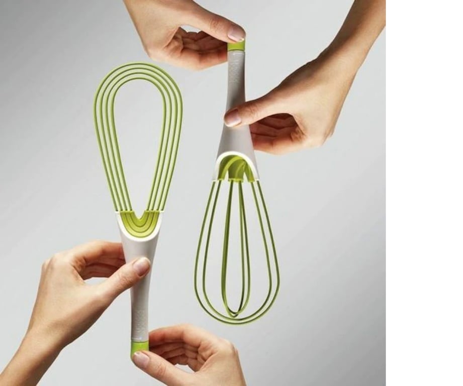 It is two essential tools in one elegant design. Use it to whisk ingredients together and then with a simple twist