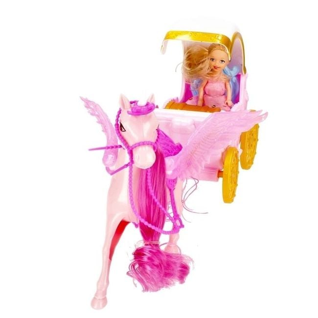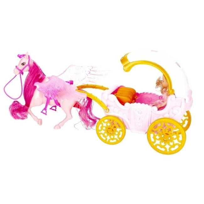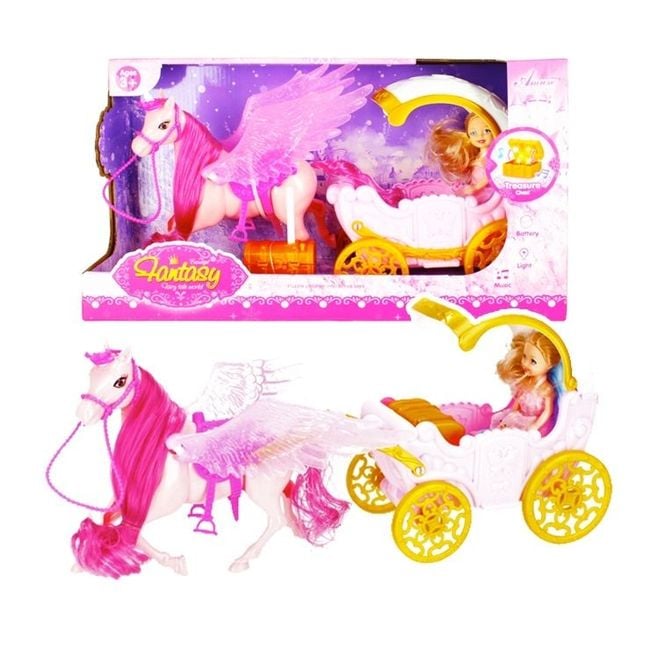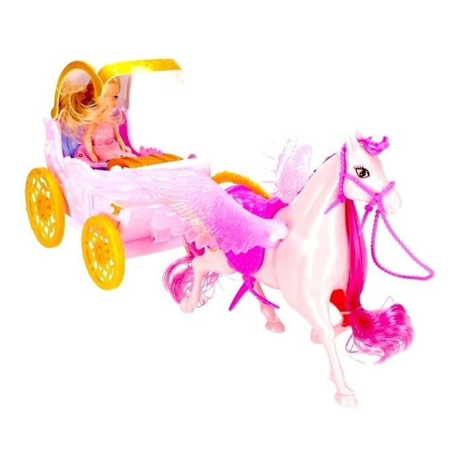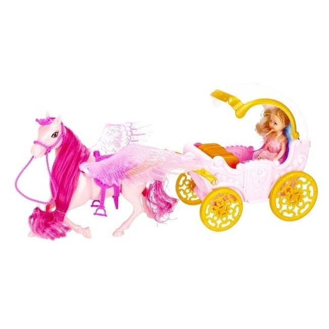 Horse with carriage and doll.