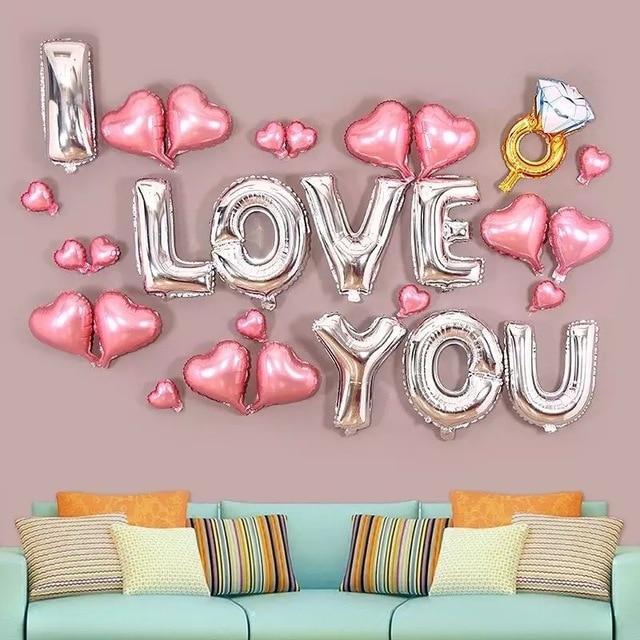 Decorative balloons I love you. In slate or silver colour.