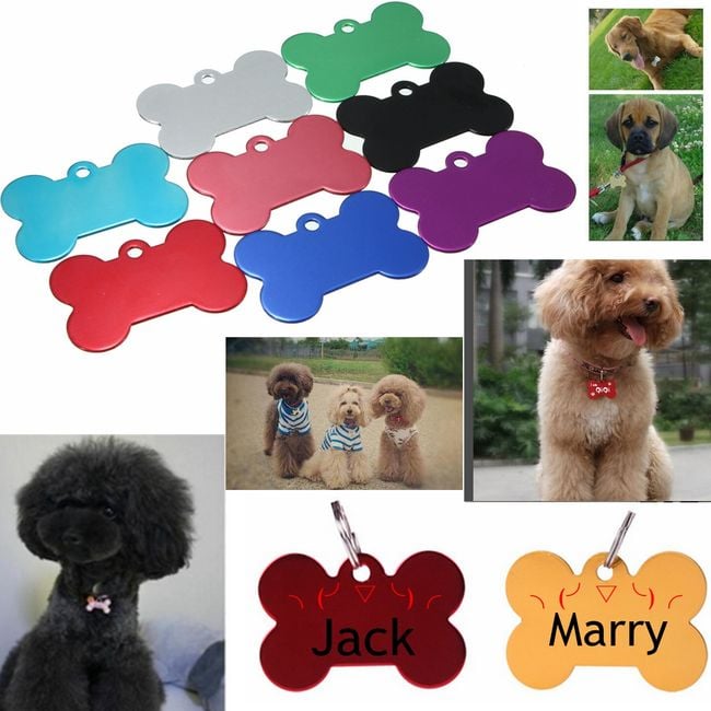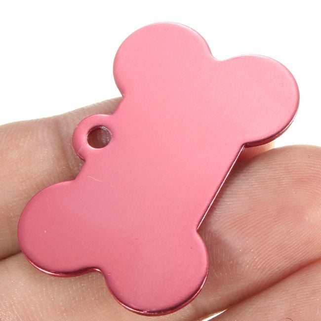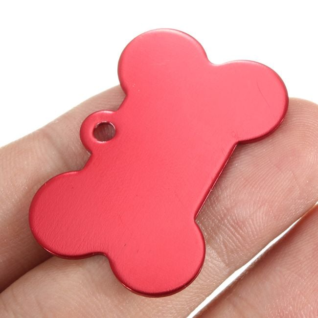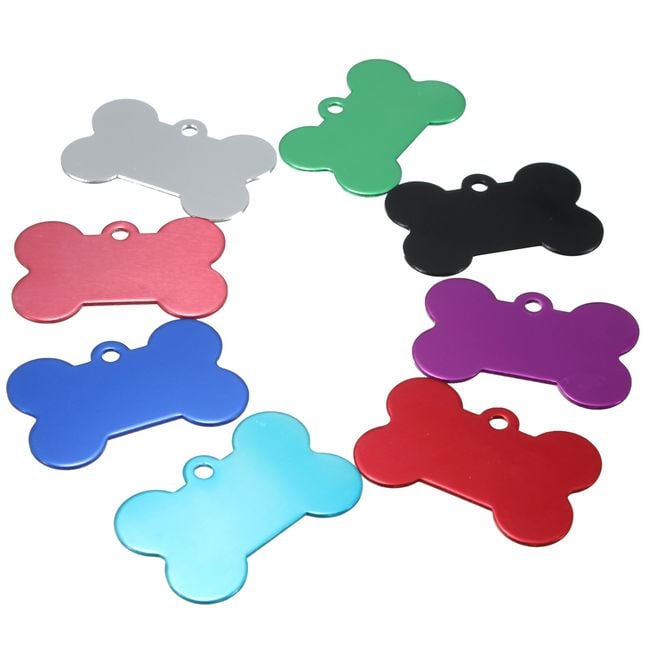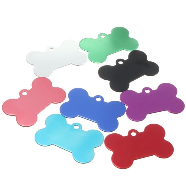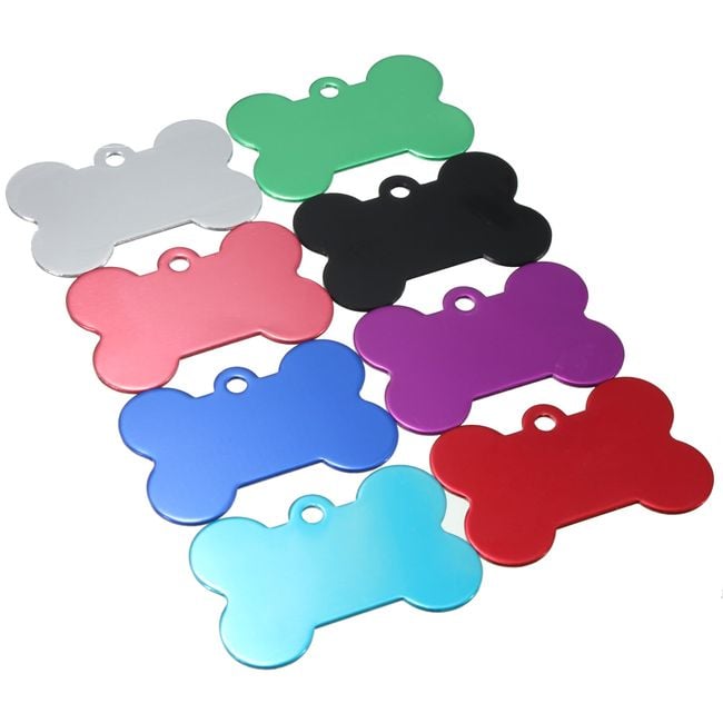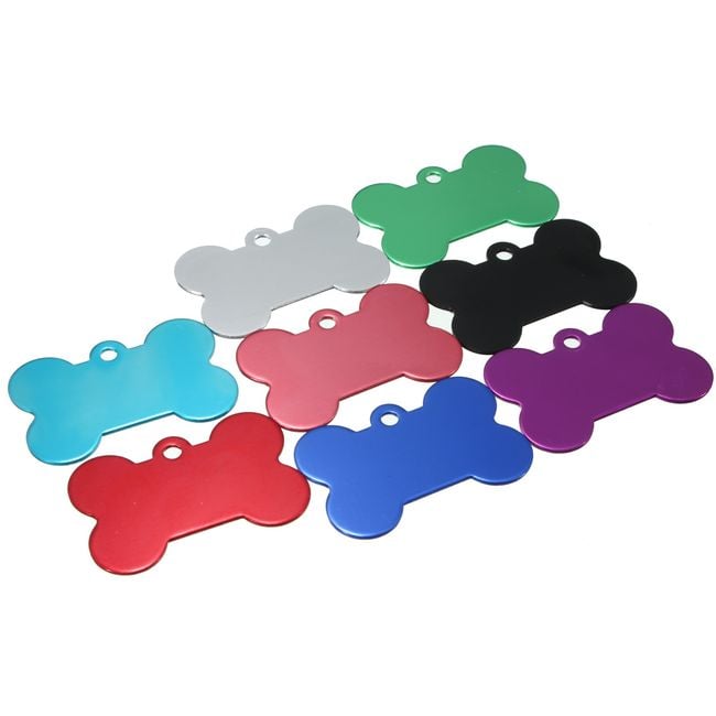 Every dog and cat should have an identification tag on their collar in case they get lost. This tag is shaped like a bone and is available in several colours. You can have your address or phone number engraved on the tag.