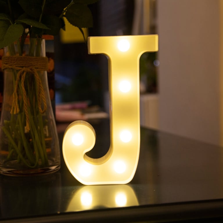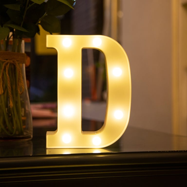 Illuminated letters with small bulbs. There are also illuminated numbers available. Ideal as a decoration for a room. The illuminated letters are battery-operated (batteries not included).