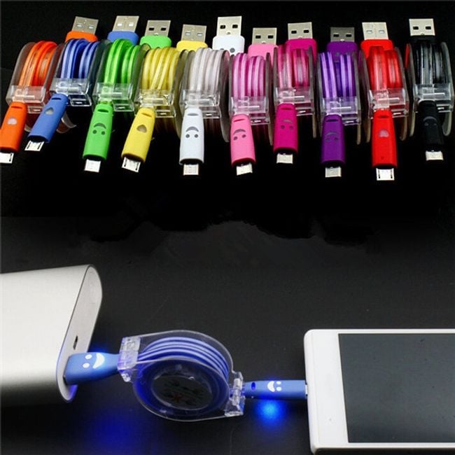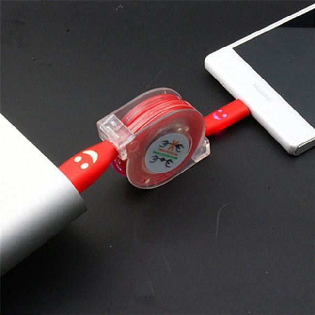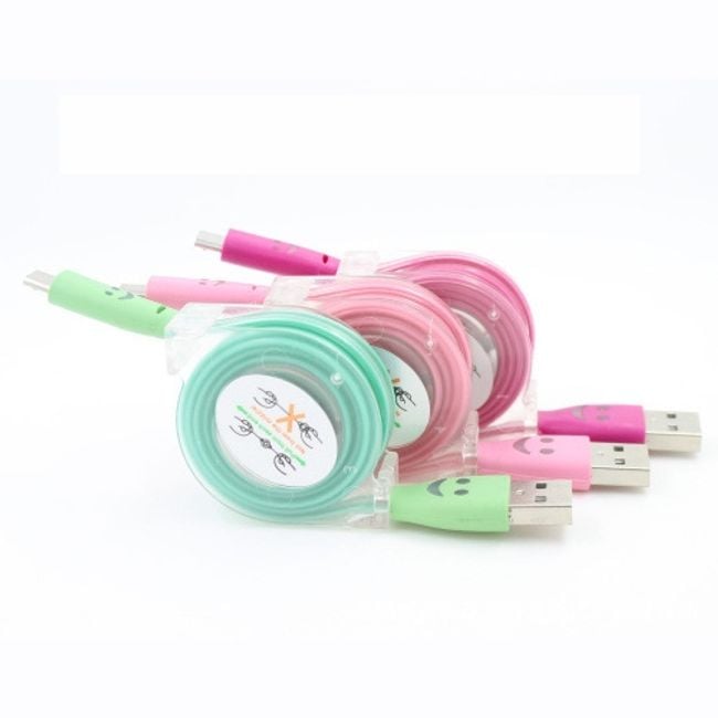 Practical retractable cable for micro USB products. Not only does it charge your device, but it also transfers data. Thanks to its clever design, you can prevent the cable from tangling. Available in several colours.