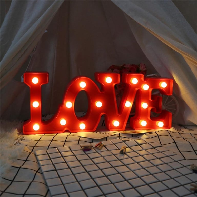 Illuminated sign LOVE, which creates the right atmosphere, for example at a Valentine's celebration.