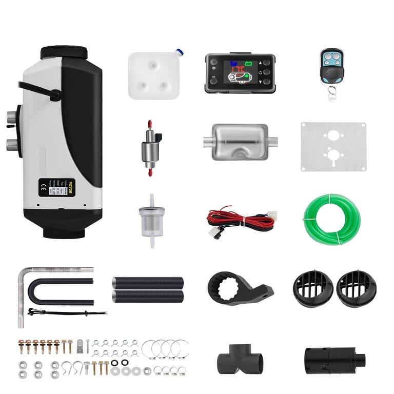 This independent car heater is a great helper for winter. It can generate power of up to 5000 W, so you can use it in your personal or commercial vehicle. The heater has a diesel tank with a capacity of 10 litres, so you don't have to worry about stopping frequently for refuelling. It comes with complete installation accessories, including a remote control, LCD switch, filters, and ventilation openings.