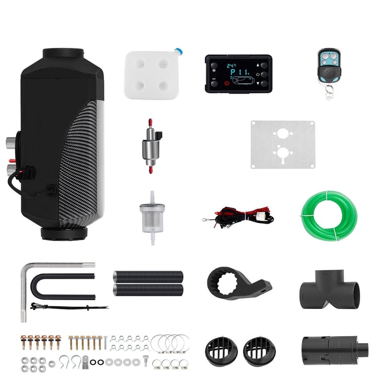 Independent car heating should be an essential part of your equipment. With a power output of up to 5000 W, it can keep your passengers warm throughout the journey. It has a 15-litre diesel tank, so you won't need to stop frequently for refuelling. The heater comes with complete accessories for easy installation, including a fuel pump, LCD switch, supply pipes, and silicone seals.