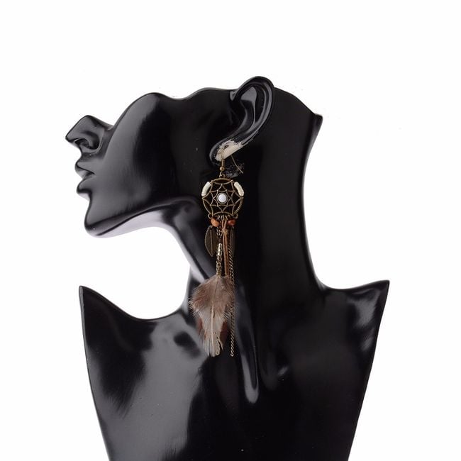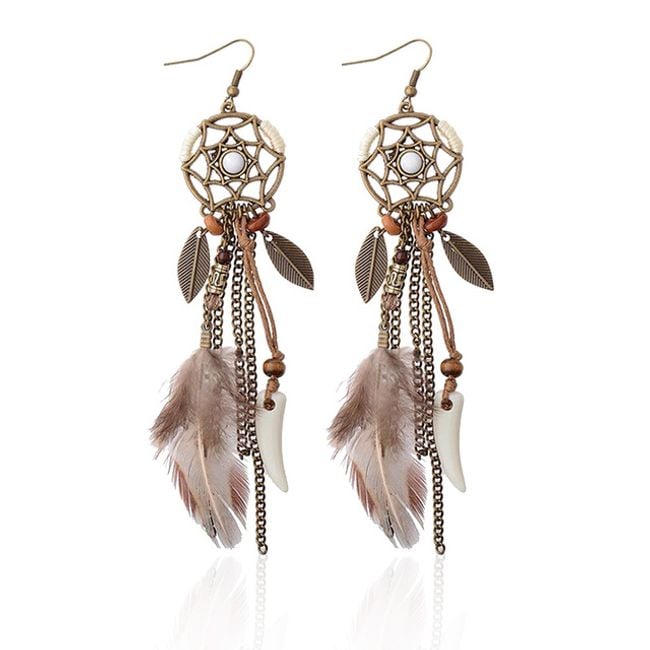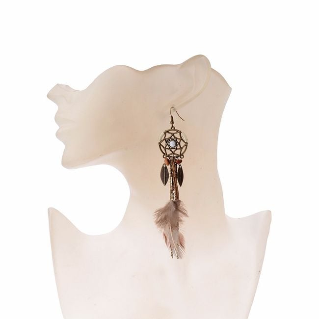Women's Indian earrings with beads and feathers.