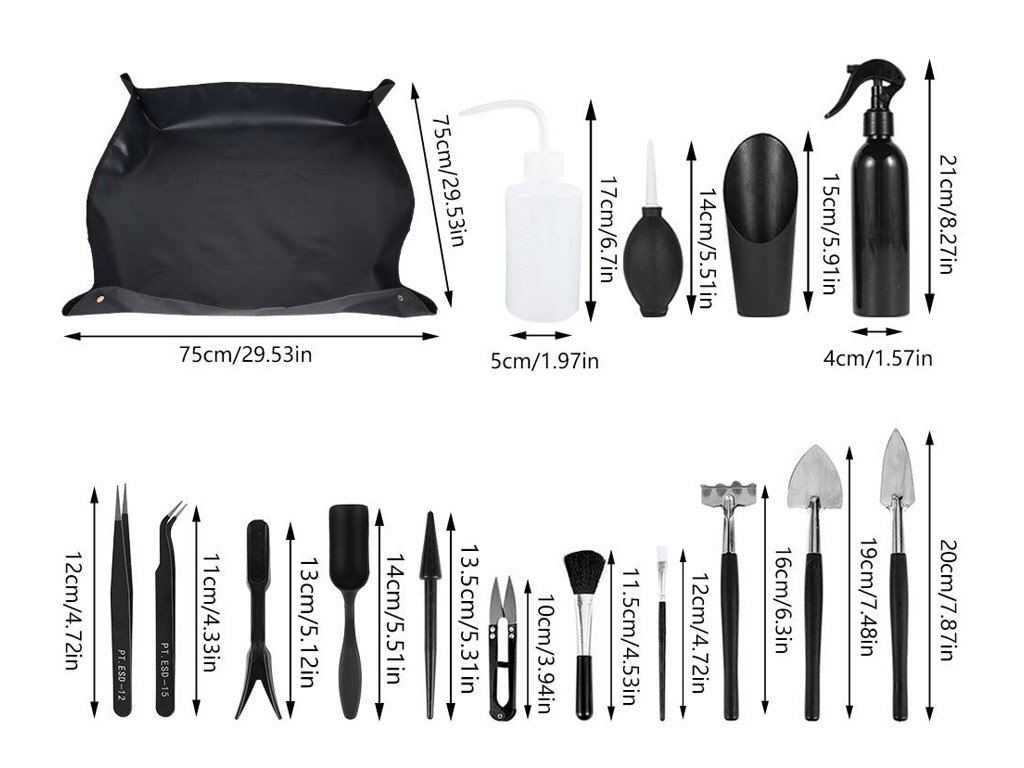 Garden tool and equipment set for planting and repotting. Great for use on houseplants and garden plants.