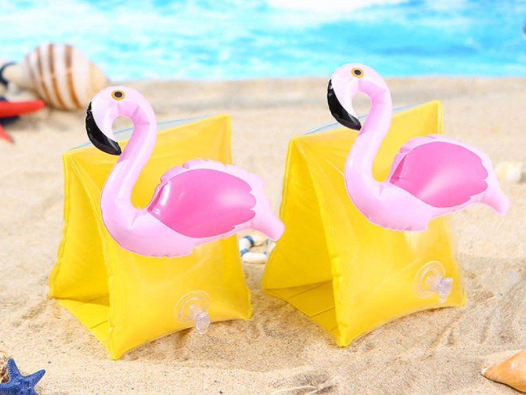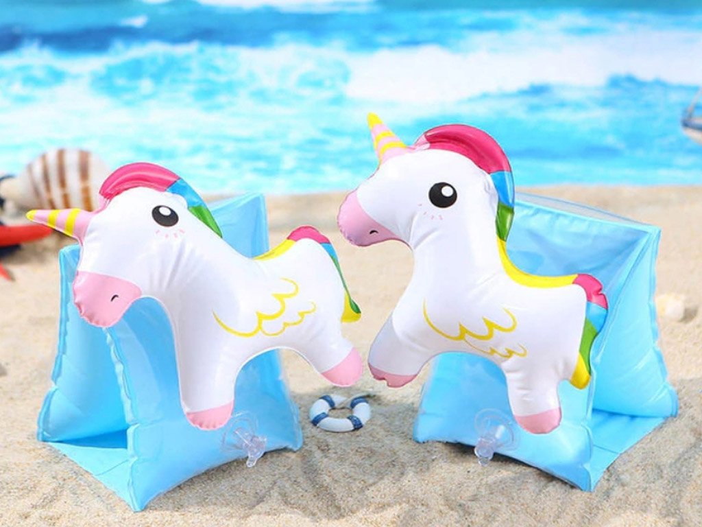 Beautiful inflatable armbands for children for swimming, made from durable PVC material, will assist your kids during their first swimming lessons. Choose from many different designs, from cheerful flamingos to fantastic unicorns.