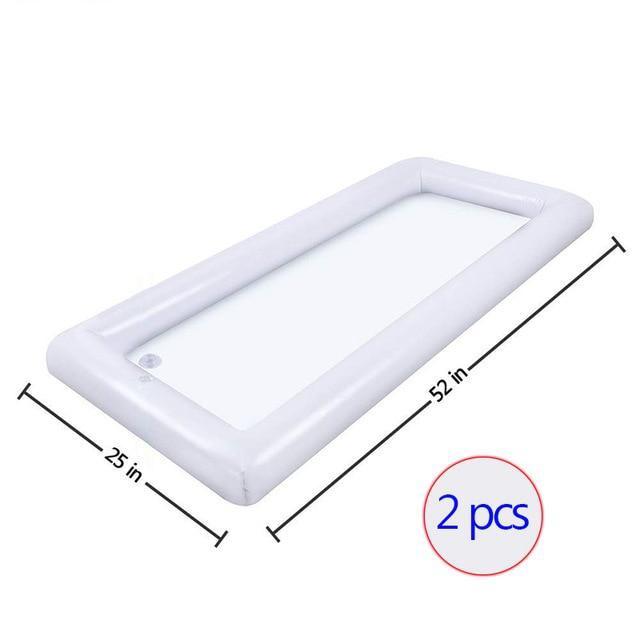 Inflatable drink and snack holder for the water. Serves as a super ice bar. Suitable for pool parties.