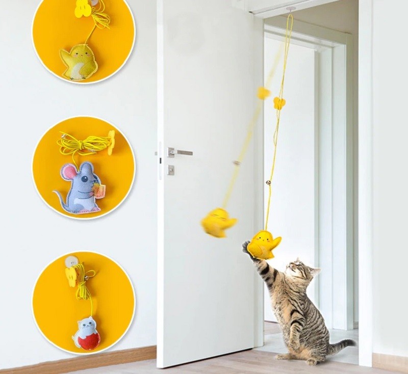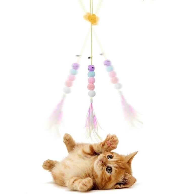 This hanging toy for cats is the right choice! It is safe and non-toxic. Your cat will love playing with it. The natural feathers are soft and gentle, making it the perfect toy for your feline friend. Additionally, you can adjust the toy as needed to keep your cat entertained.