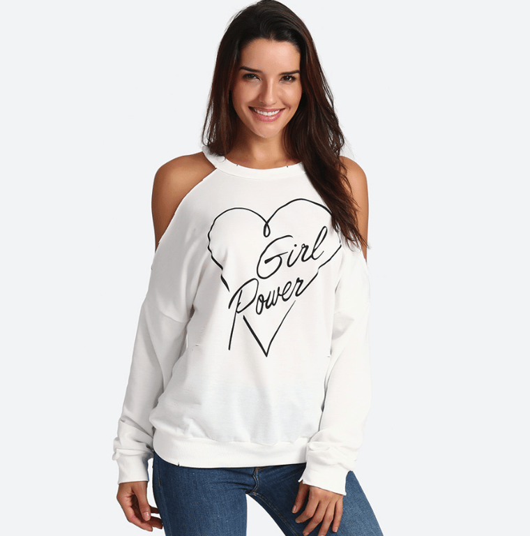 Interesting original warm women's sweatshirt with cut-outs on the shoulders.