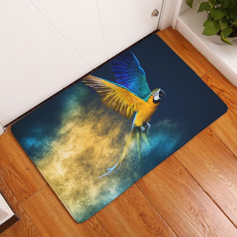 Original doormat for the front door. Design featuring a parrot. Available in multiple variants.