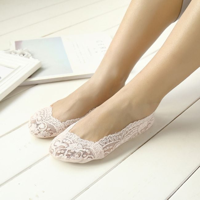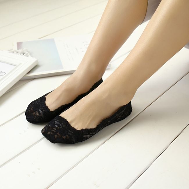 The socks have non-slip flowers on the bottom and are suitable for ballet flats or high heels.