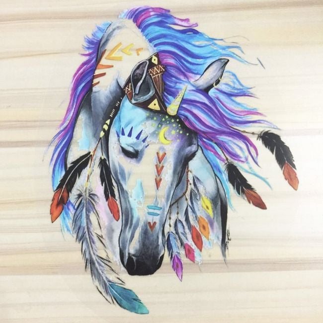 The iron-on transfer featuring a horse design will delight many young ladies!