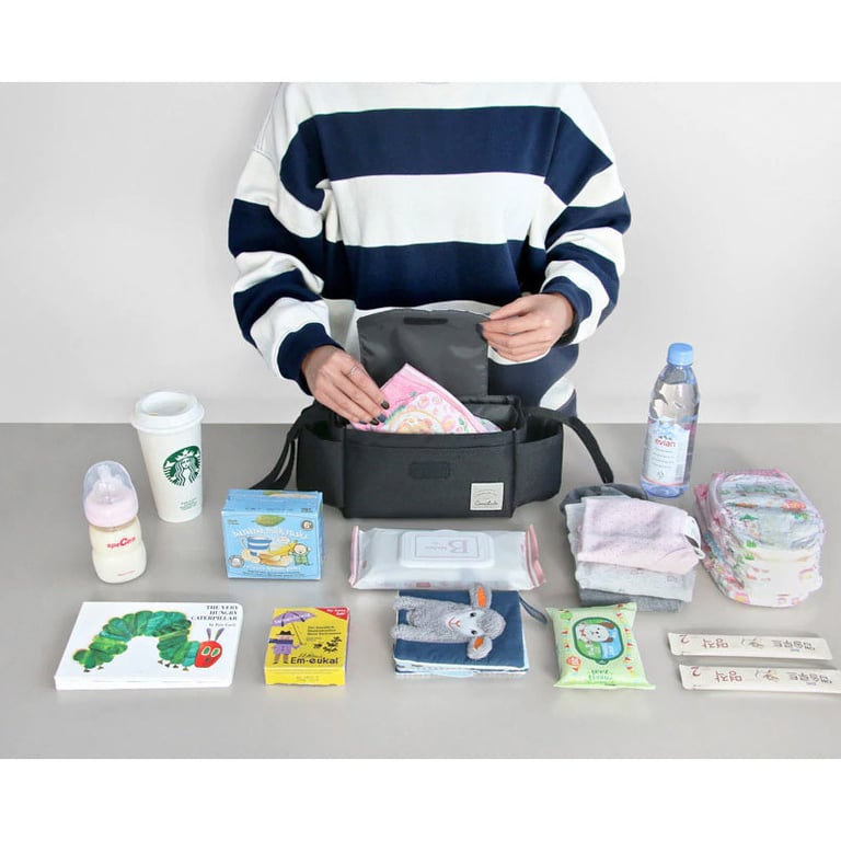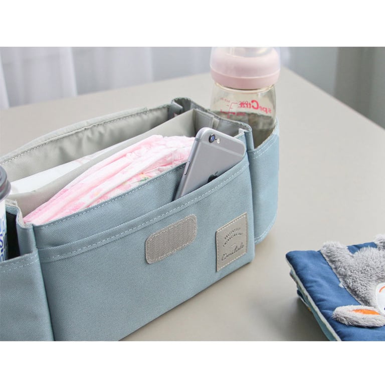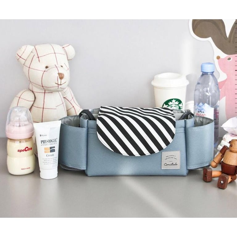Stroller organiser in Nordic style. Water-resistant. Bottle pocket, large pocket with Velcro fastening and separate compartments. Various options available.