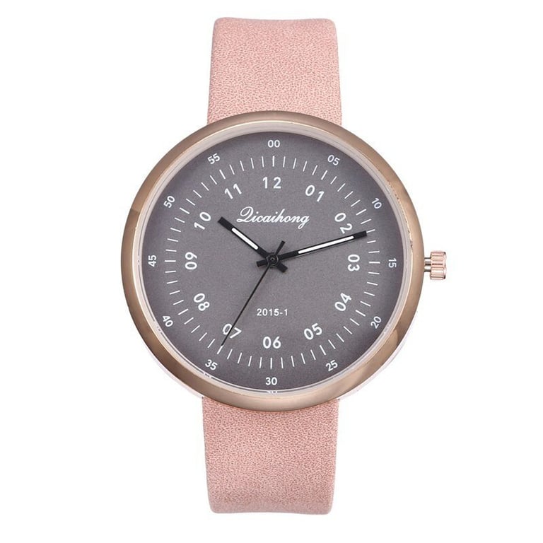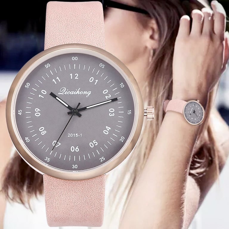 Women's watch with a leather strap. Dial with numbering in a metal frame.